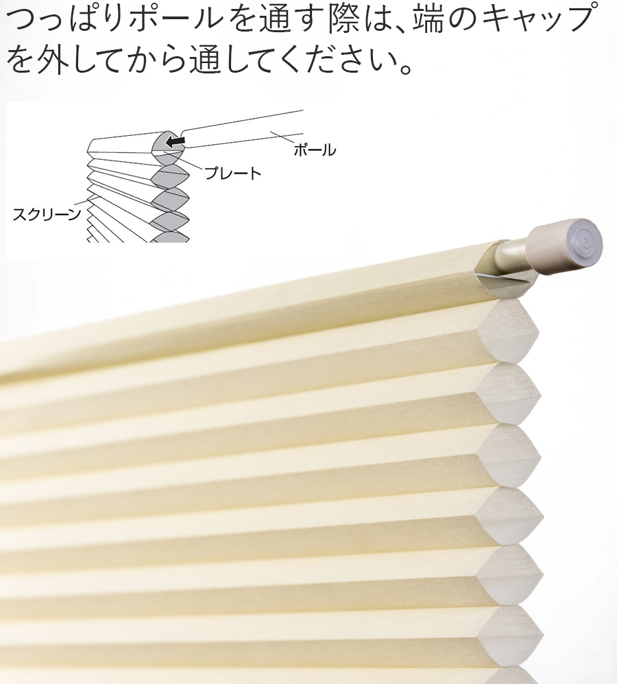 突っ張り棒で簡単に取り付け可能なハニカムシェード