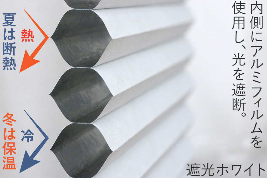 ハニカム構造が空気の壁を作ってくれるから、夏は暑い日差しからお部屋の空気を守り冷房効率アップ。